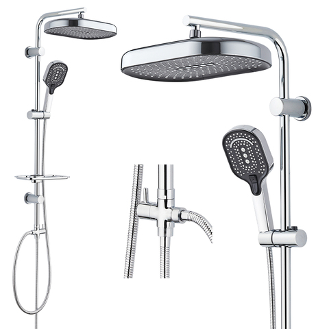 Novo Conjunto de Chuveiro de Parede Ajustável com Torneira de Chuva para Banheiro com 3 Funções